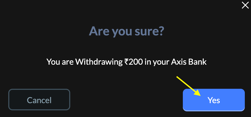 Step 4: You will receive a pop-up to confirm the bank account where your funds will be credited.