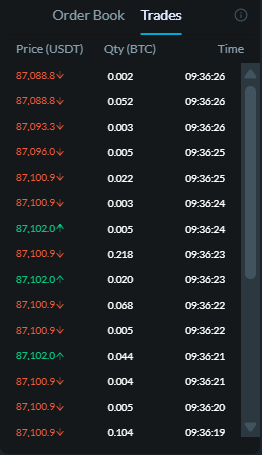 Monitoring Market Activity: Next to the Order Book is the Trades panel, which lists all executed trades on Shark Exchange, offering transparency and insight into the platform's trading activity.