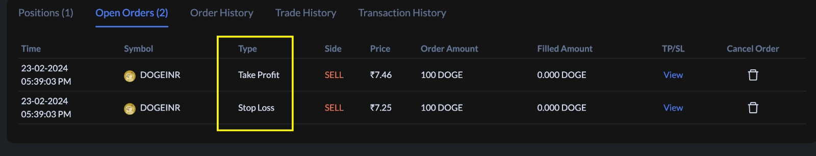 If the direction of your position changes (from long to short or vice versa), any TP/SL orders set for that position will be automatically cancelled.