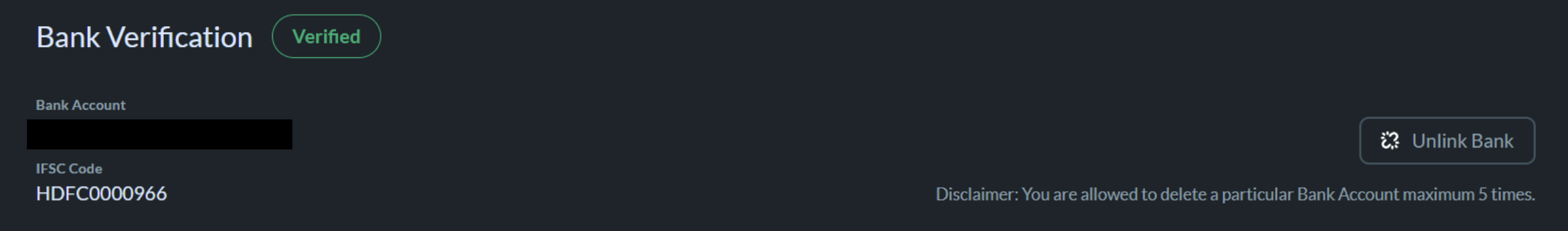 Step 3: Click on "Bank Details." Click on Unlink Bank